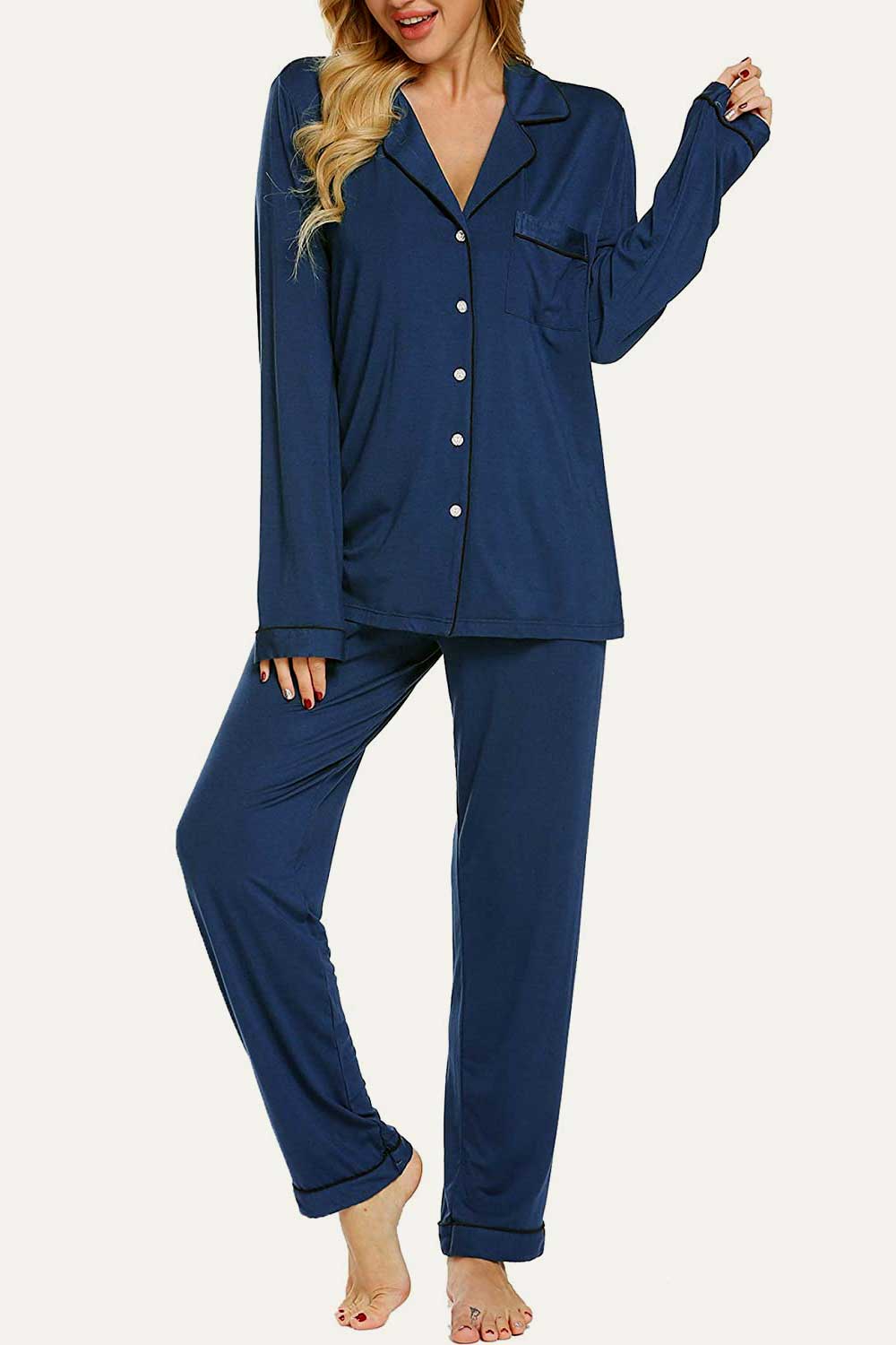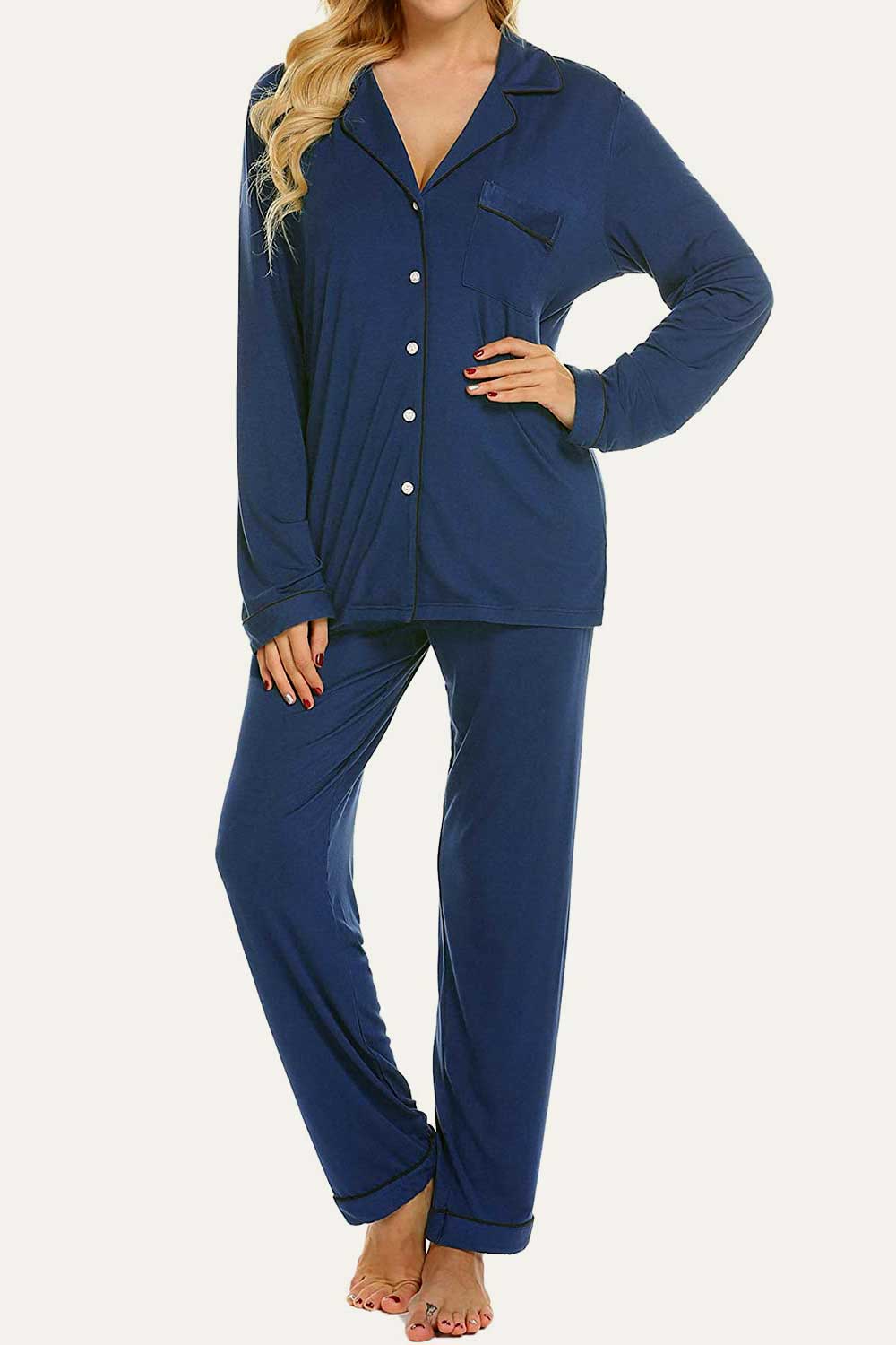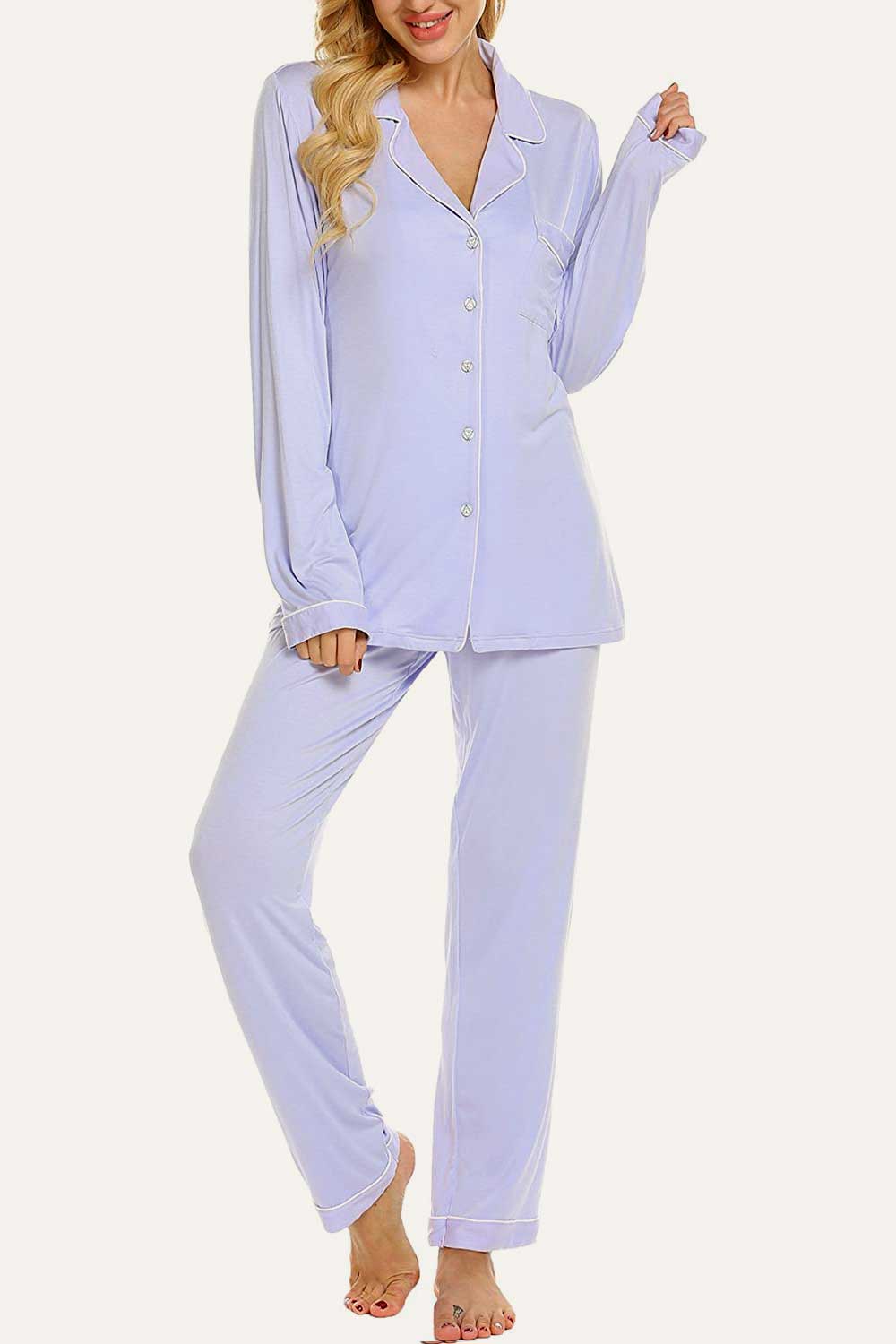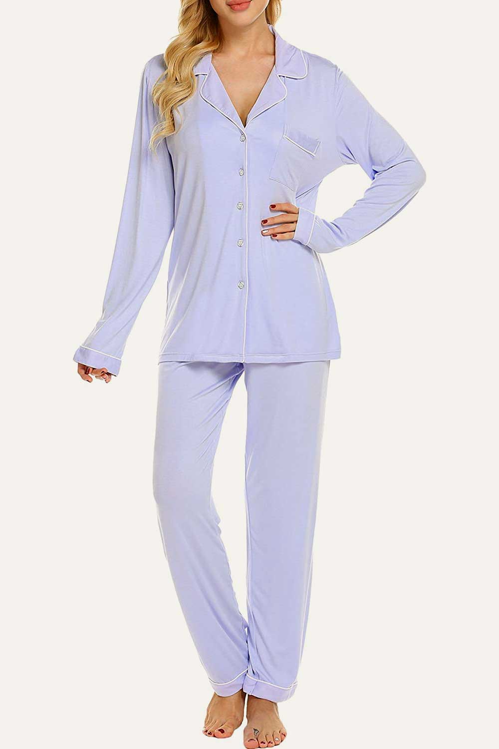 Raglan short sleeves, scoop neck top and elastic waist, full-length pants.No buttons.No pockets.No drawstring. Enjoy staying comfy and cozy at any time when sleeping or lounging. Comfy sleepwear aren’t just reserved for the bedroom,our pajamas are now chic enough for the streets. Easy fit and Pull on closure.This cute & loose lounge set for women is the best pajamas.