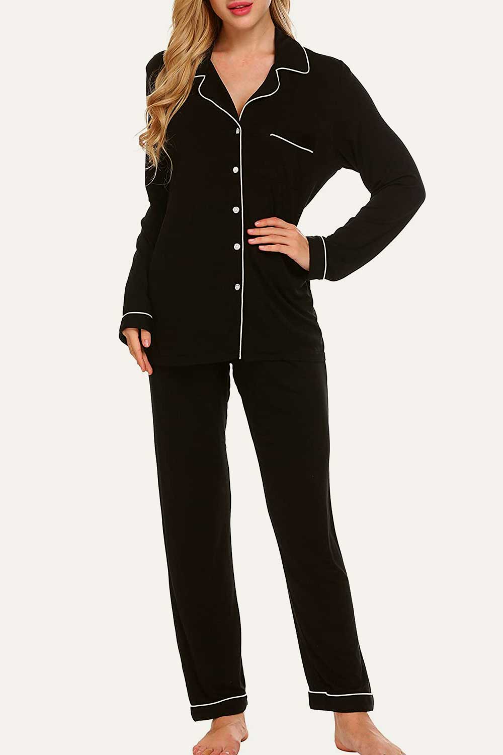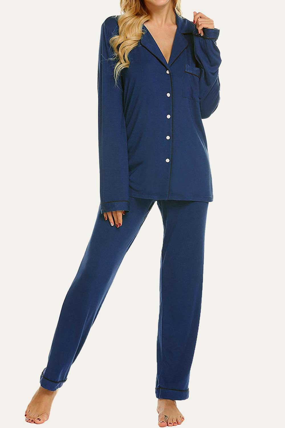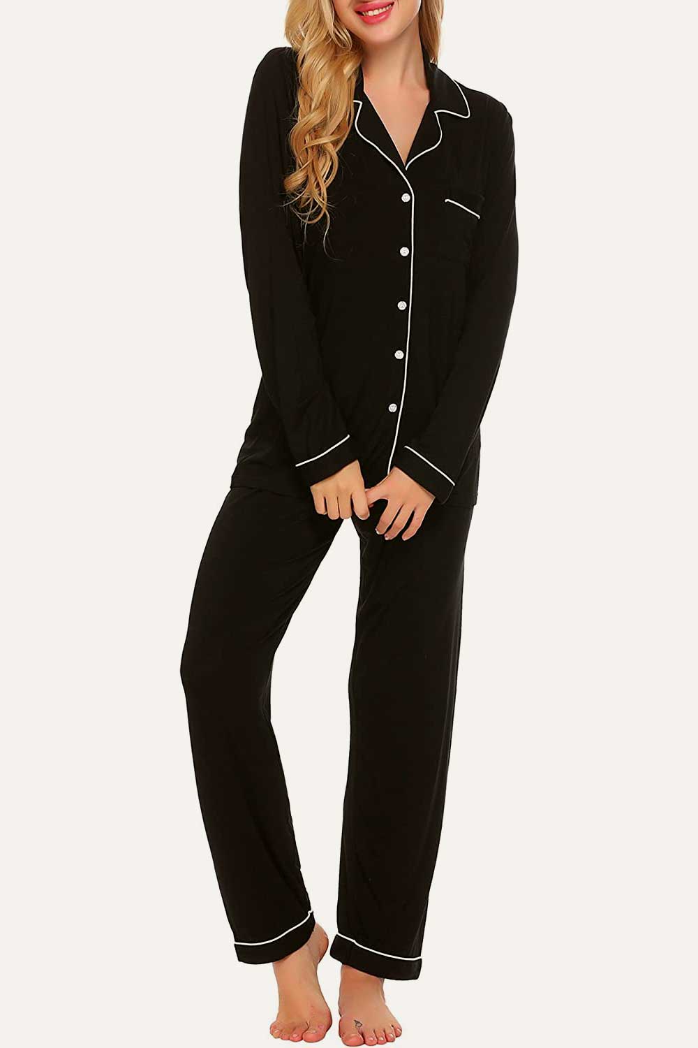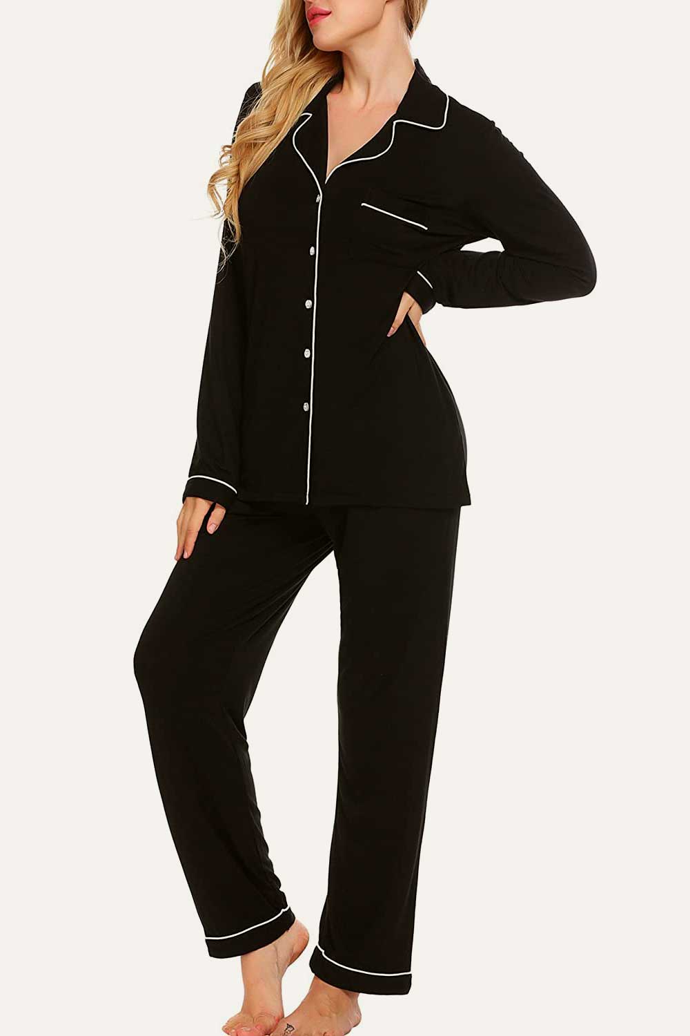 Raglan short sleeves, scoop neck top and elastic waist, full-length pants.No buttons.No pockets.No drawstring. Enjoy staying comfy and cozy at any time when sleeping or lounging. Comfy sleepwear aren’t just reserved for the bedroom,our pajamas are now chic enough for the streets. Easy fit and Pull on closure.This cute & loose lounge set for women is the best pajamas.